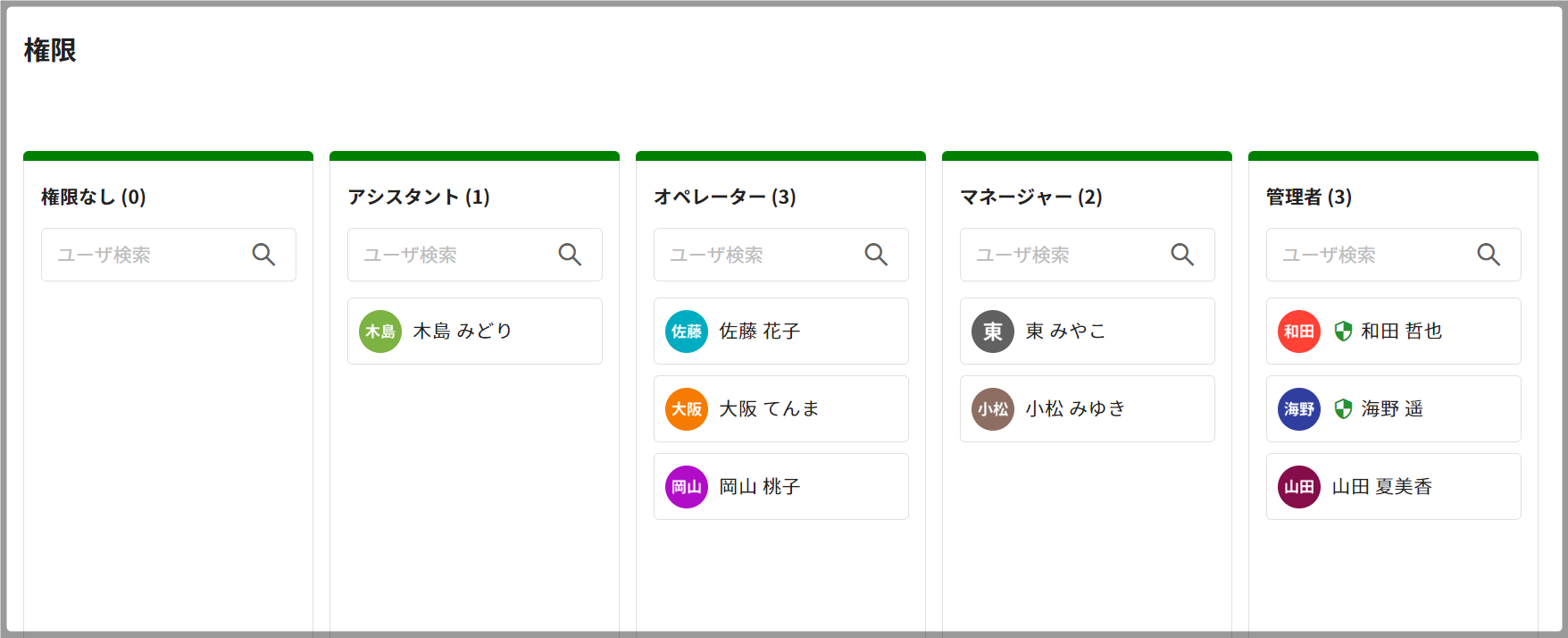 ユーザをドラッグ&ドロップすることで権限を付与することが可能です。
