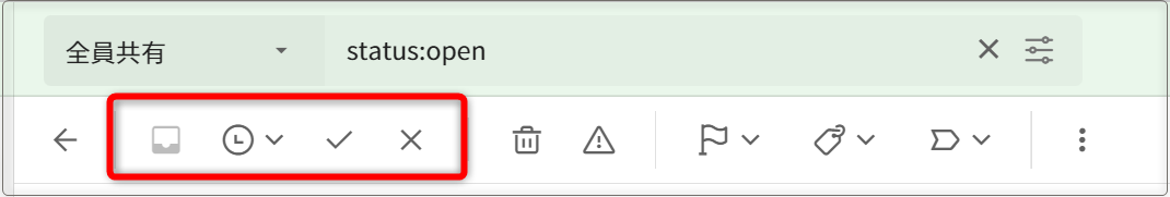 ステータス変更は、次の手順で設定します。メッセージ詳細画面より設定する方法メッセージ詳細画面に入ると、ツールバーに各ステータスが出現します。