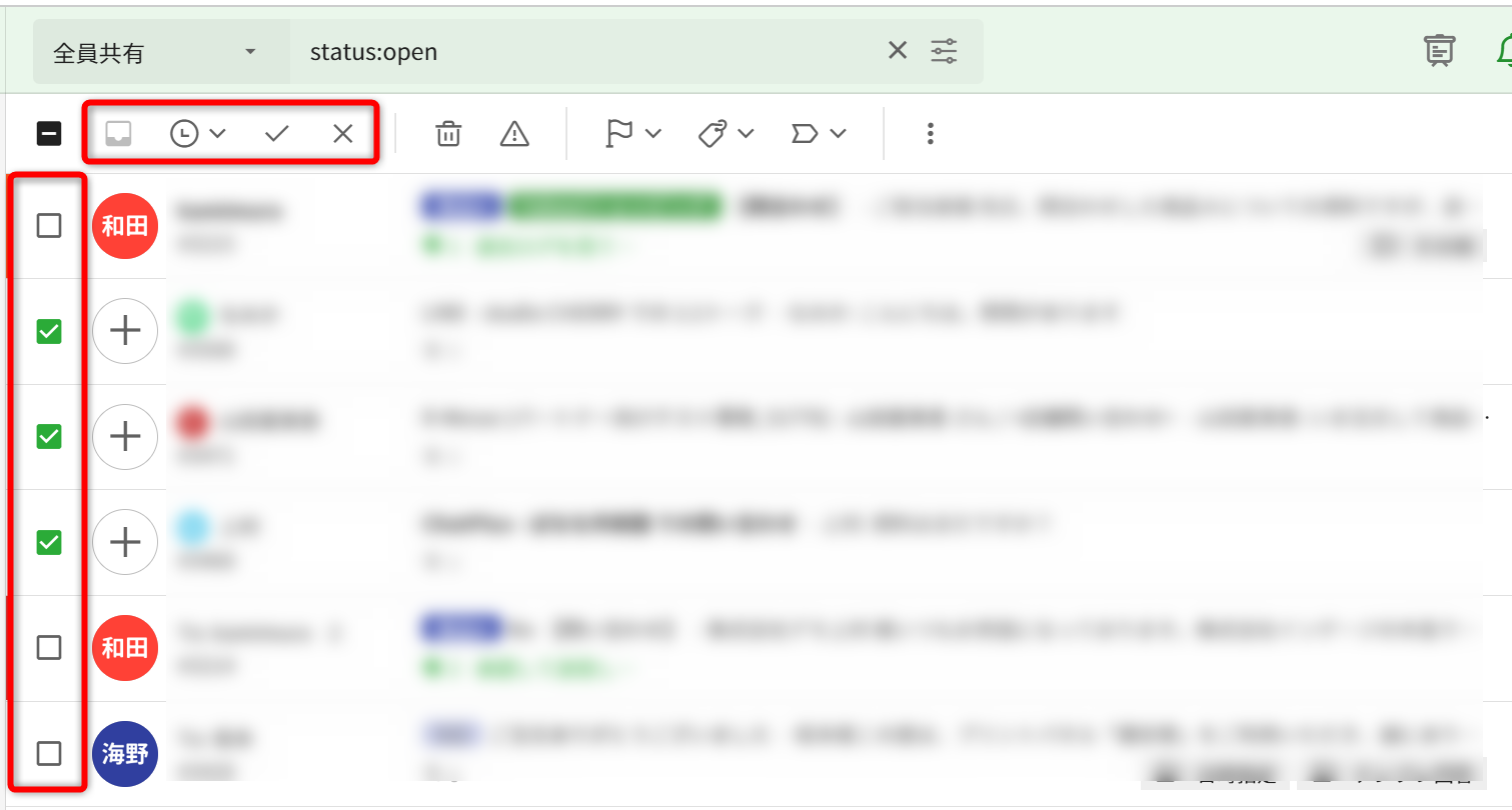 変更したいステータスを選択すれば完了です。まとめて設定する方法同じステータスにしたいチケットのチェックボックスを選択します。