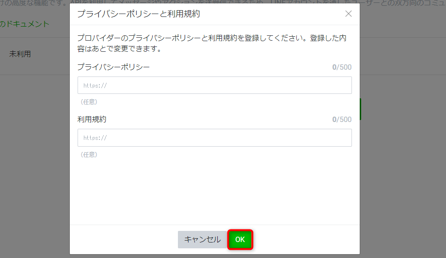 5.プロバイダーを使用するためのプライバシーポリシーと利用規約が登録できます。
