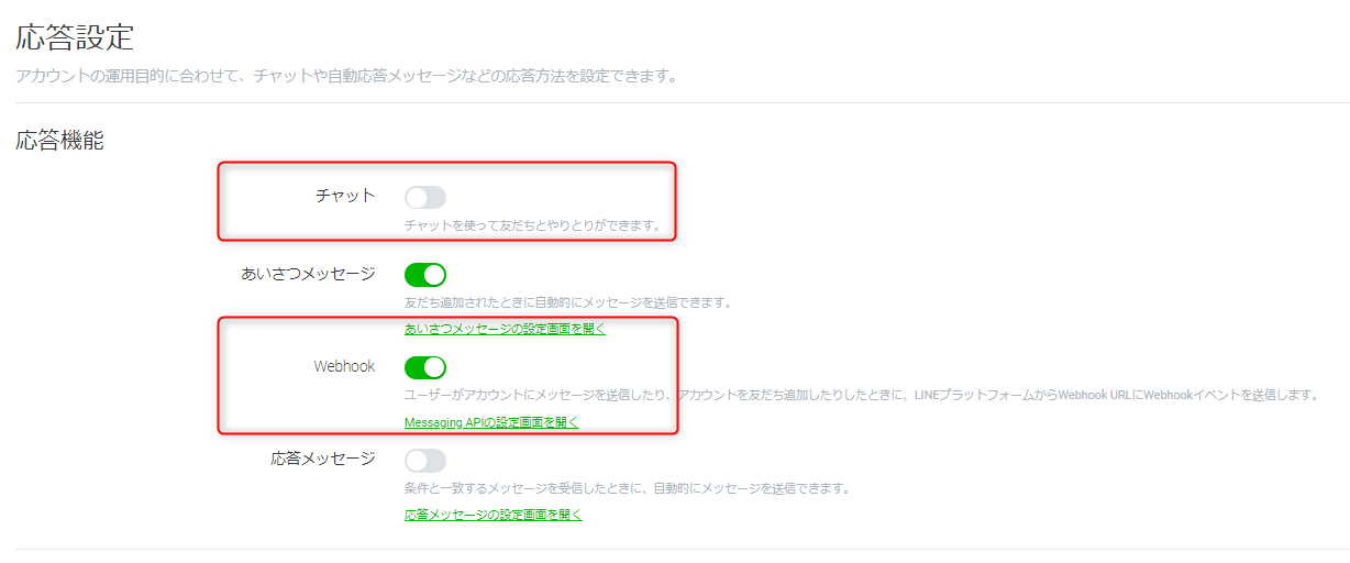 LINE公式アカウント連携オプションを解約される場合、ご解約日までに LINE Official Account Manager より、LINEの受信設定である Webhookの設定をオフにしていただく必要がございます。