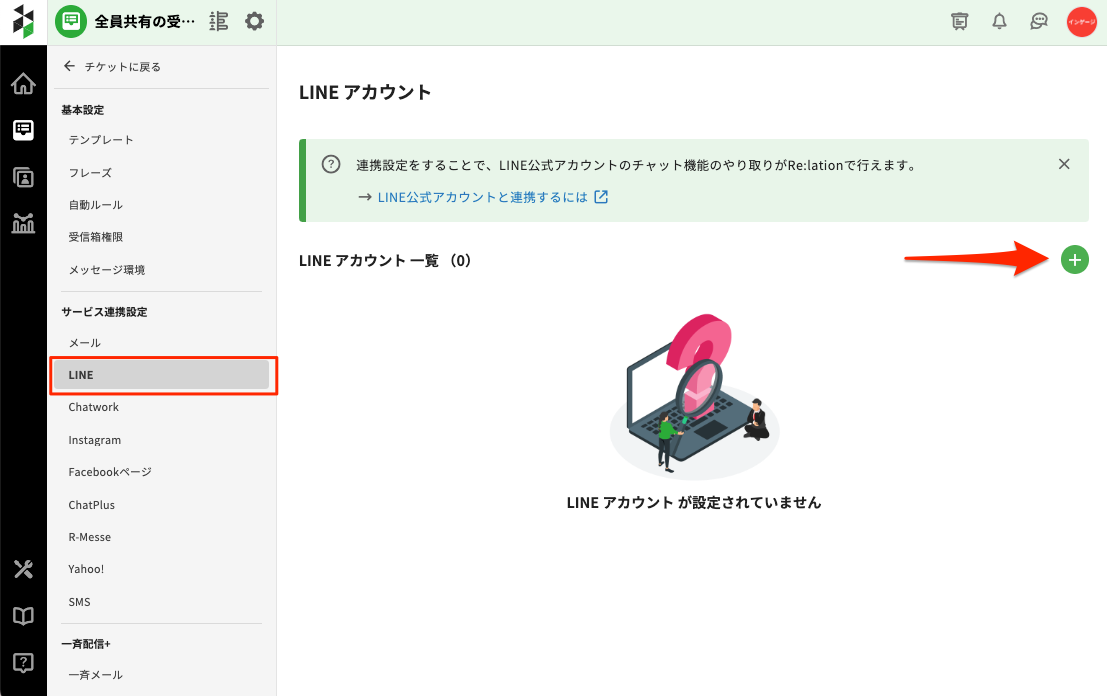 ・Re:lationではLINE公式アカウントの機能のうち、チャット機能が利用可能です。