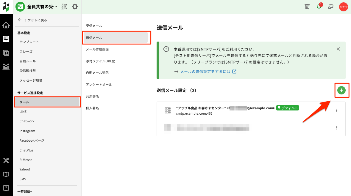 2. [メール] - [送信メール] を選択し、右の「+」マークをクリックします。