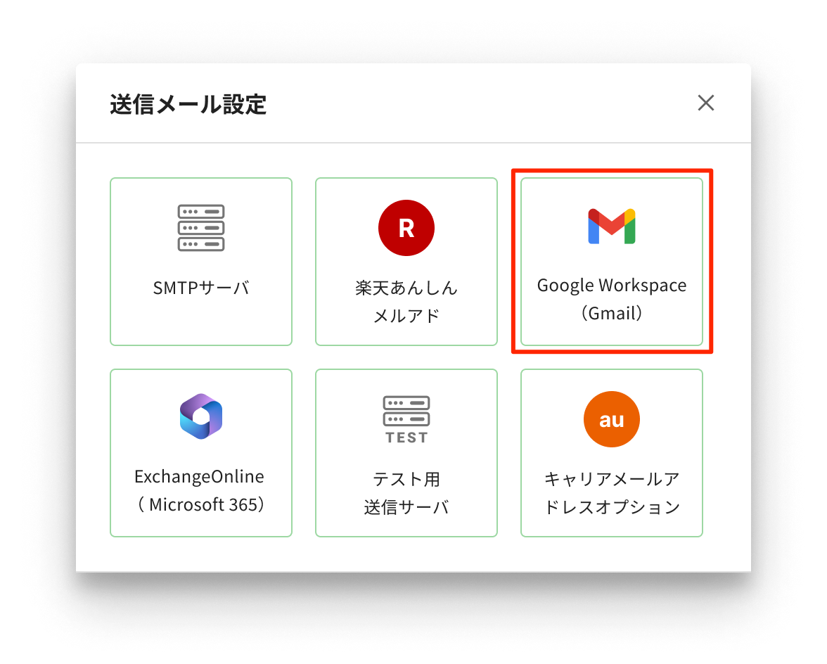 Re:lationからGmailやGoogle Workspaceの送信サーバを使用して送信を行う場合、以下の方法で設定をします。