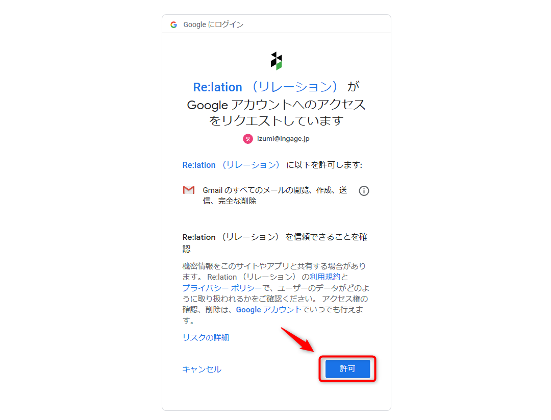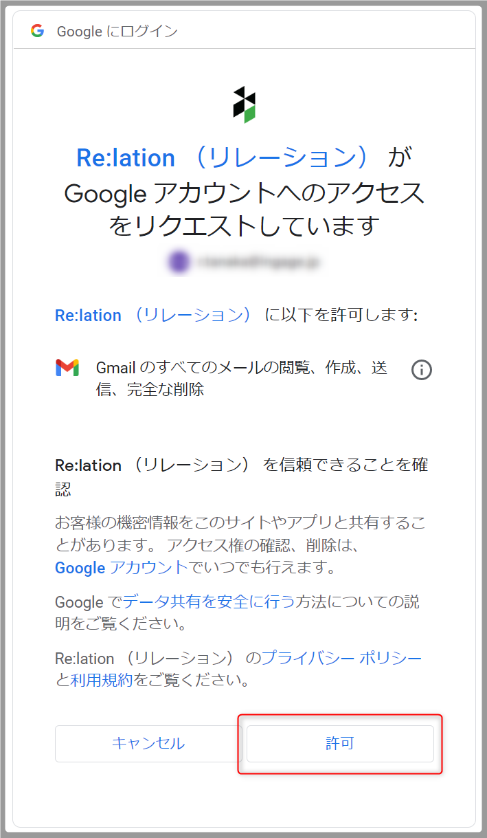 3.Re:lationにアクセスを許可するか尋ねられるので、[許可]をし、完了です。