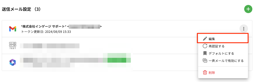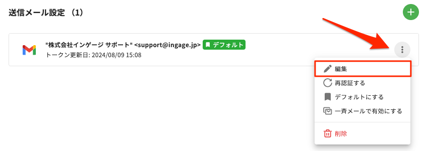 今認証をしたメールアカウントのメニューアイコンより、[編集する]を選択します。