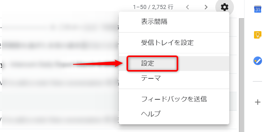 1.認証で使用したGoogle Workspaceアカウントの[設定]を選択します。