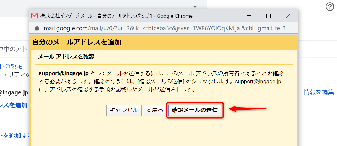 4.確認メールの送信をします。
