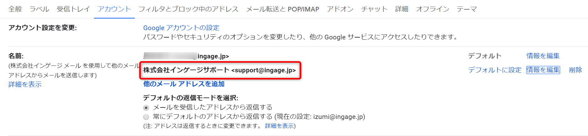 2.送信メールアドレスや送信名は、認証を行ったアカウントになるので、グループアドレスに変更します。
