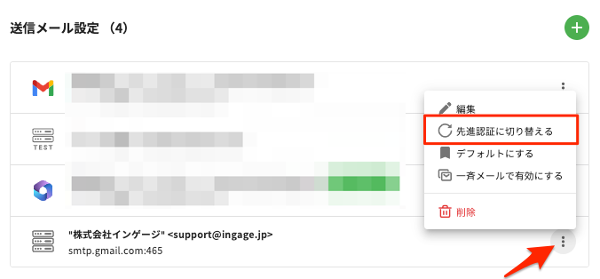 既存のSMTP送信設定を先進認証に切り替える