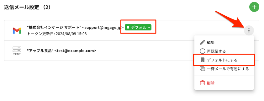 その際に、デフォルトで選択したいメールサーバを設定することもできます。