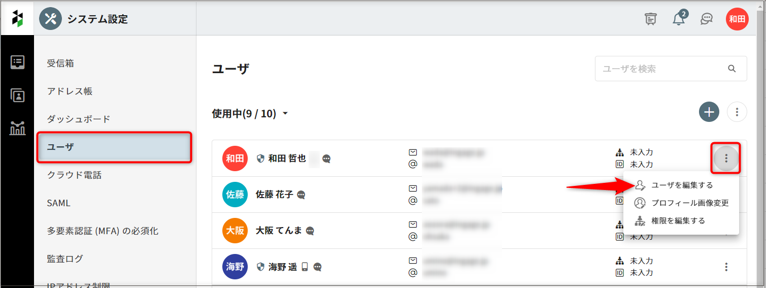 2.[ユーザ]を選択して、アプリを許可するユーザを編集します。