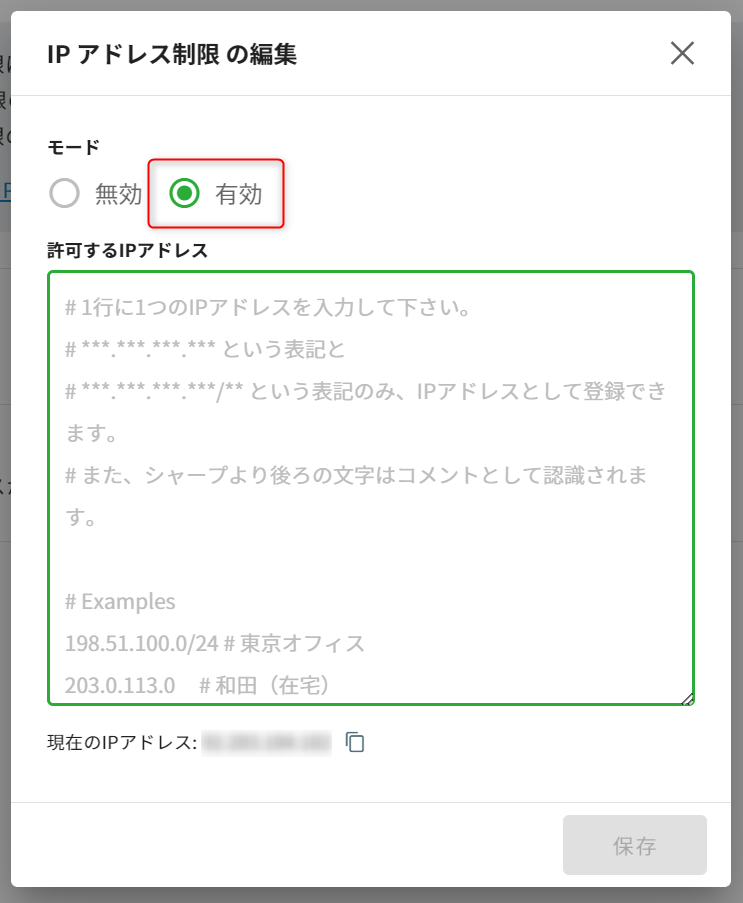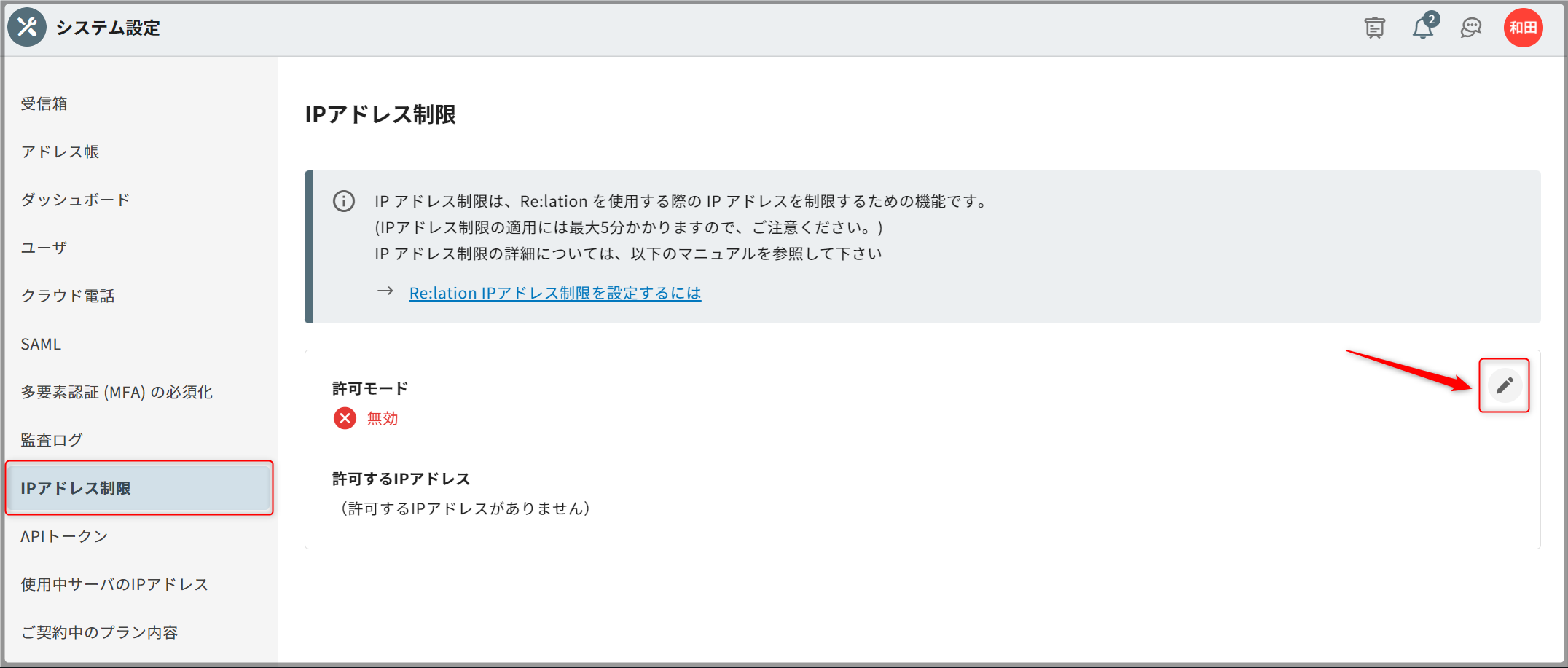 反映には最大5分かかります。お使いのRe:lationにIPアドレスによる制限をかけることができます。