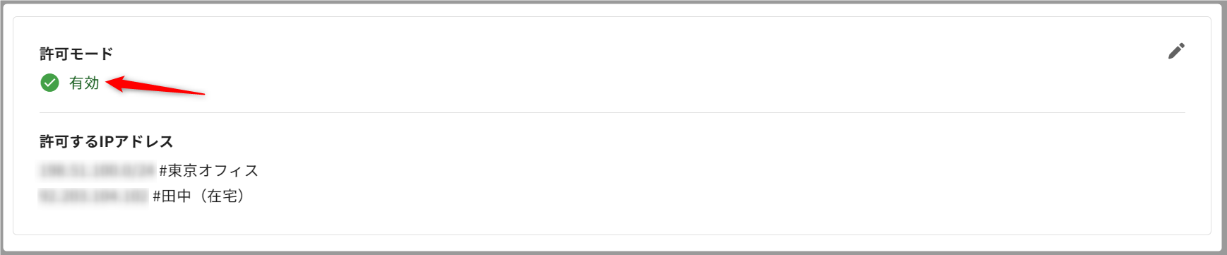 2.[IPアドレス制限]を選択して、えんぴつアイコンより編集します。