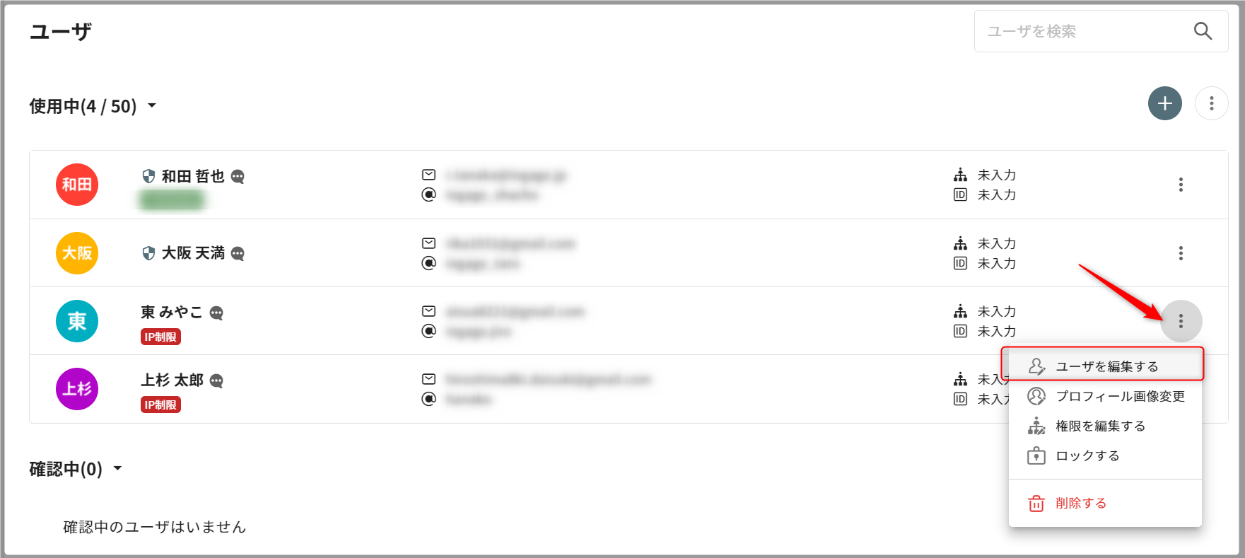 4.ユーザ一覧画面にて[IP制限中]の表示が外れていたら完了です。