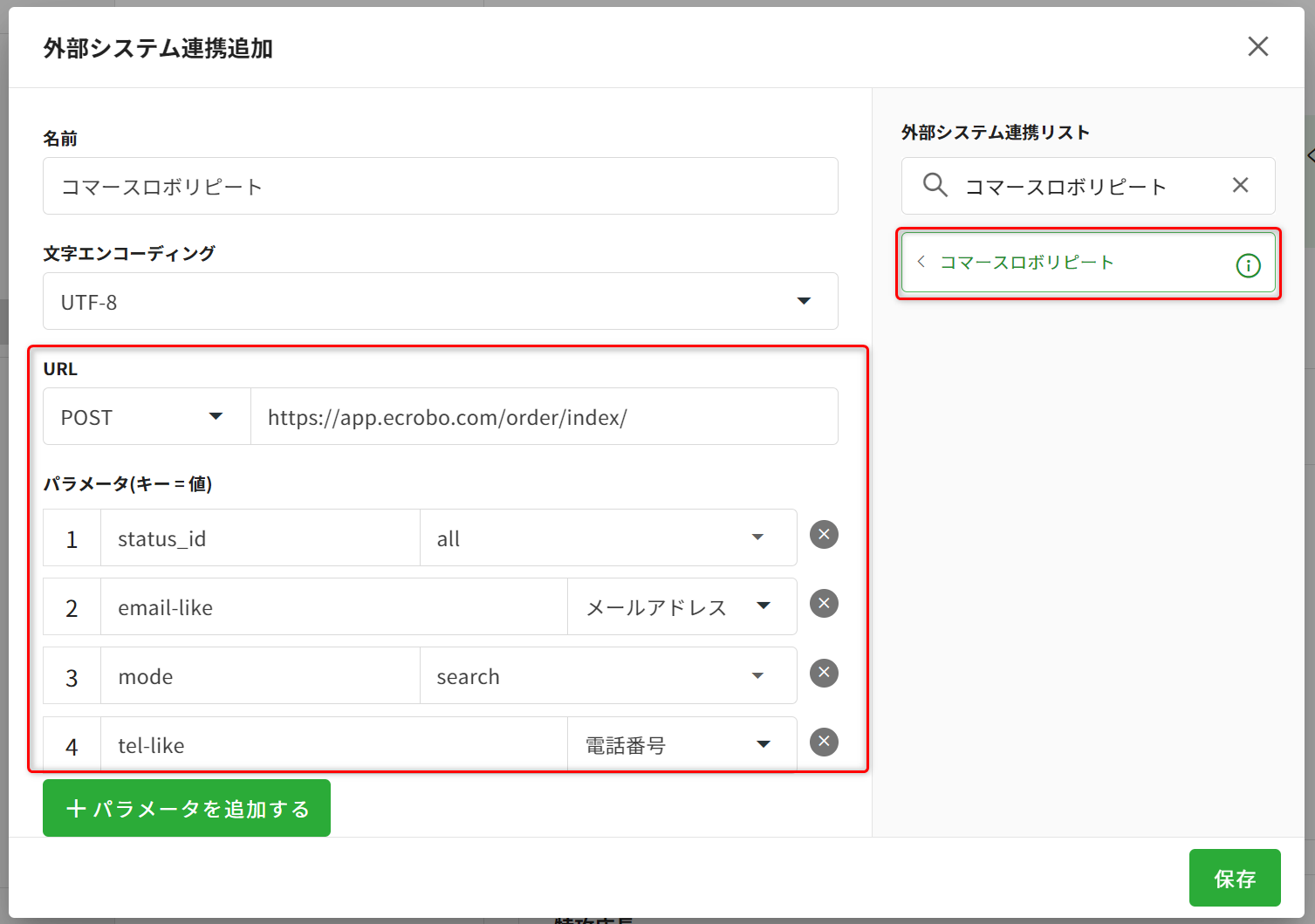 内容を確認し[保存] をクリックしてください。これでコマースロボリピートとの連携は完了です。