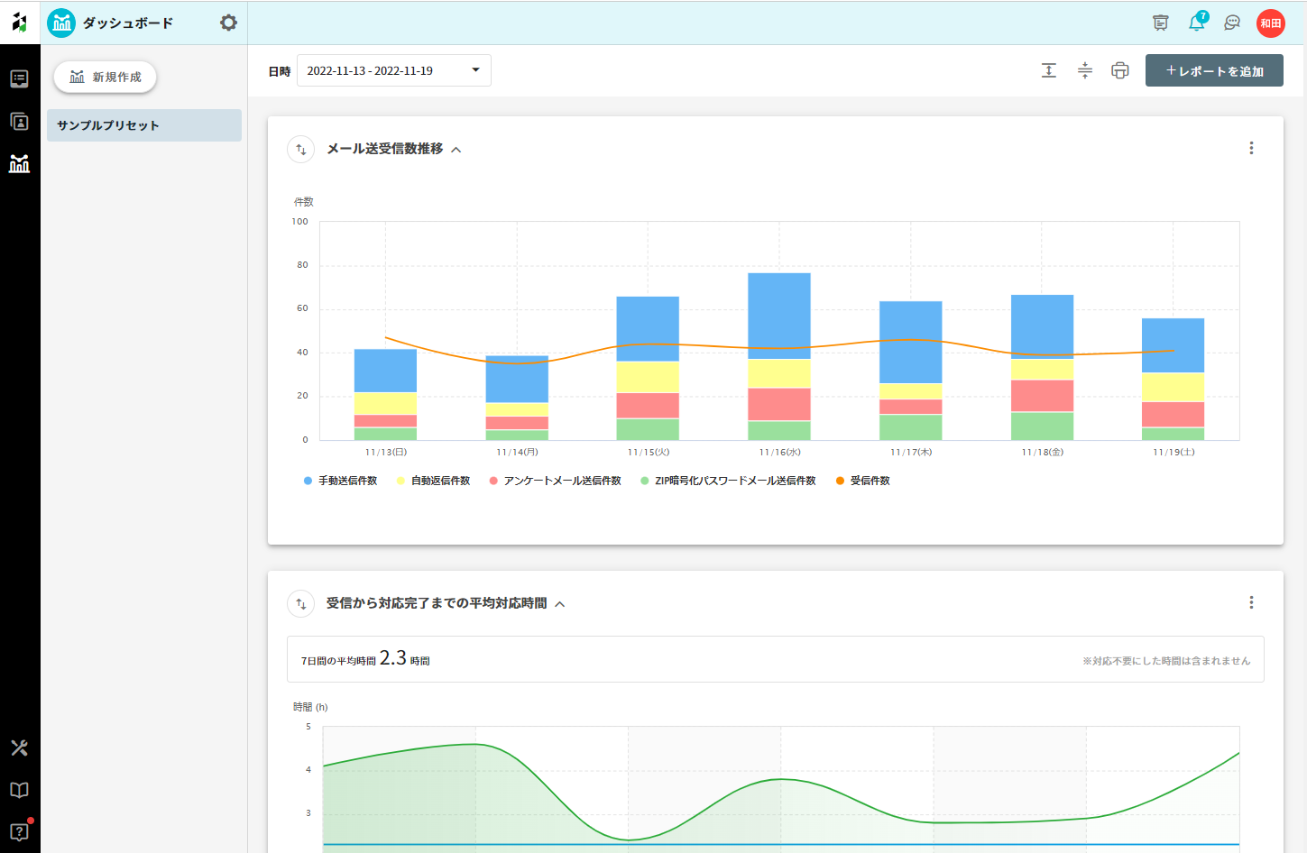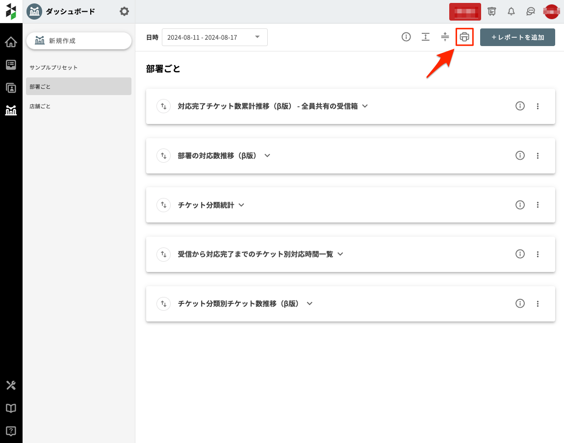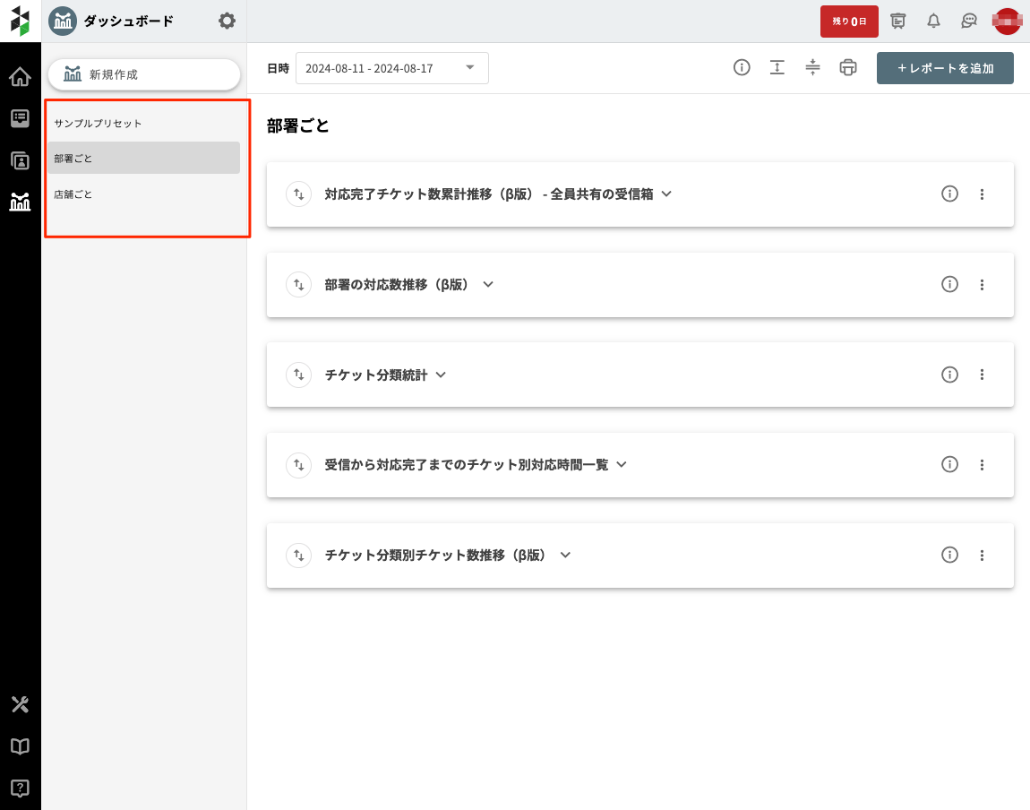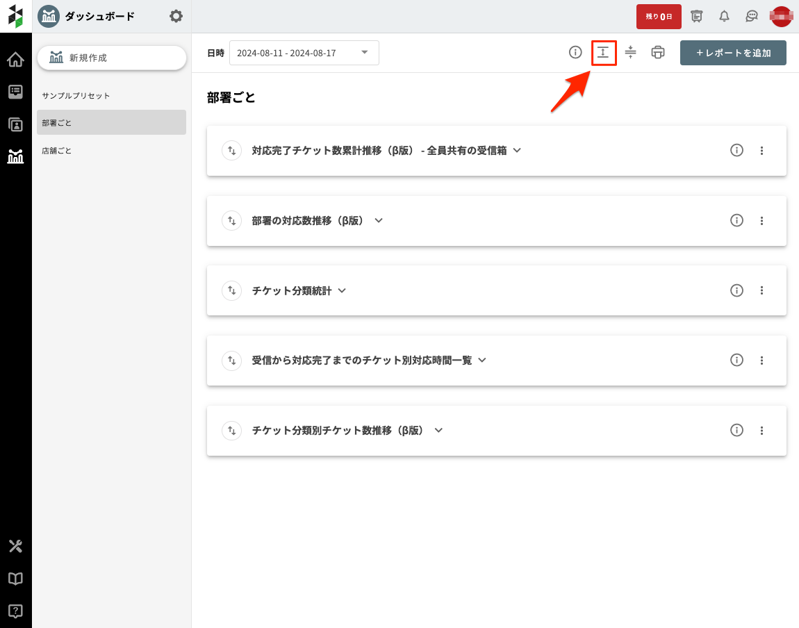 プリセットを作成・編集するにはレポートを閲覧するには1.グローバルナビゲーションバーのダッシュボードアイコンを選択します。