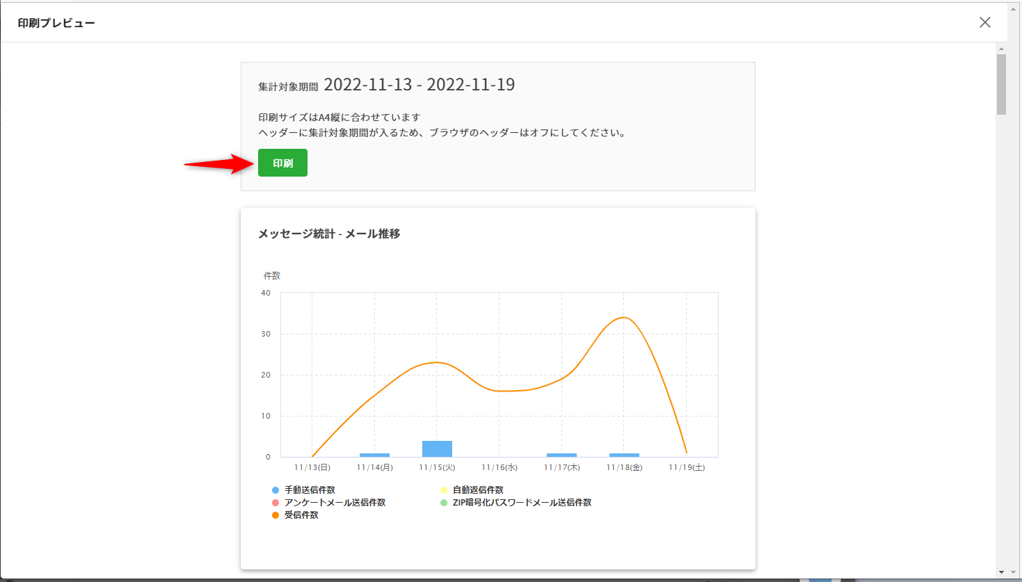 ※プリセット内のすべてのレポートが印刷されます。レポートをエクスポートするには各項目はCSV形式でエクスポートすることができます。